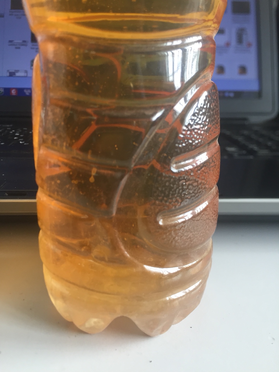 Ở hình ảnh này ta có thể nhìn rõ hơn về phần nước tích tụ ở đáy chai