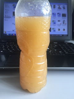 Đây là hình ảnh chai dầu sau khi đã lắc, nước và dầu tạo thành nhũ tương và chuyển hệ sang màu trắng đục!